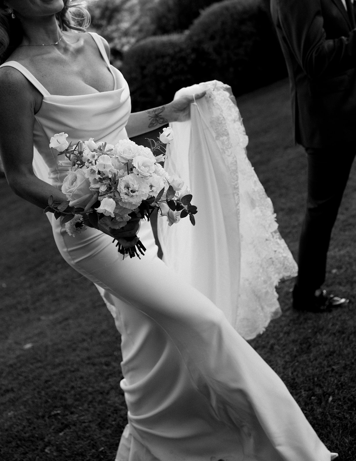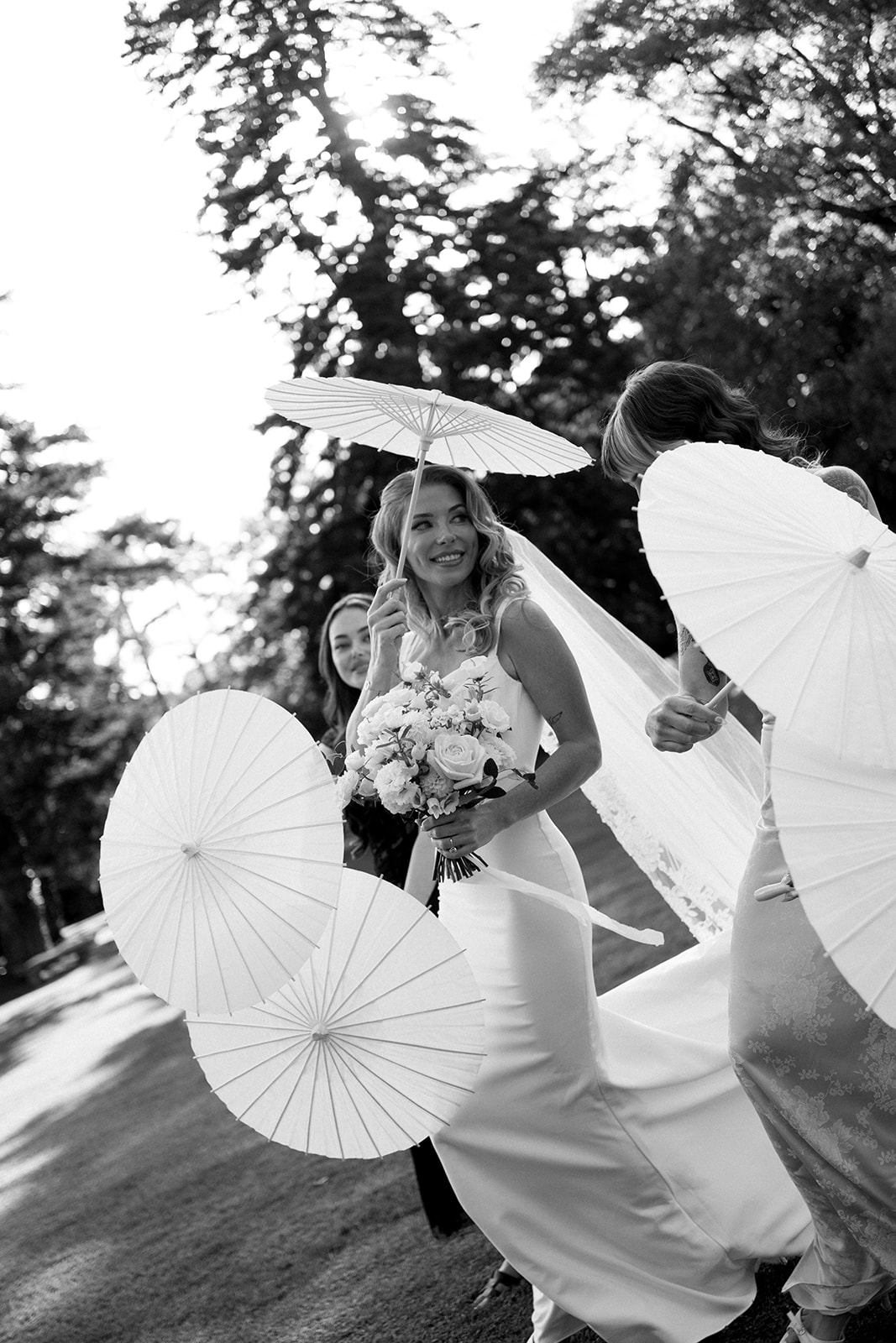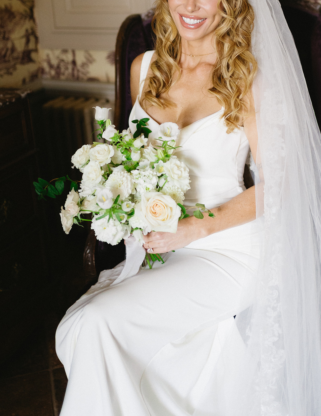 Le bouquet de Kelly, riche en variété est uniquement créé avec les variétés les plus claires de la palette, dans un style jardin anglais frais et suffisamment destructuré pour un look naturel et élégant.
